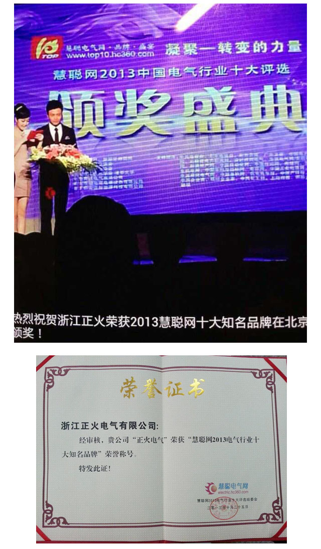 2013年6月25日,由慧聪电气网主办的“凝聚——转变的力量”2013电气行业十大评选经过启动仪式、报名、网民投票、专家评审等几轮大浪淘沙,在一千多家报名企业中“正火电气股份”脱颖而出,在此盛会上荣膺慧聪网2013电气行业十大知名品牌,更加印证着其地位和影响力。
