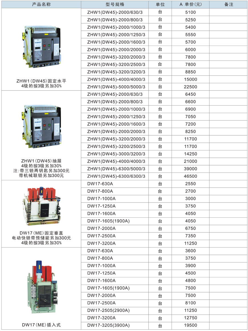DW15、DWX15、DW16、DW10万能式空气断路器