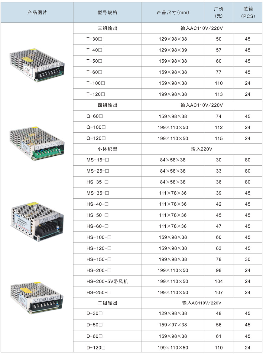 T系列、MS系列、HS系列、D系列开关电源