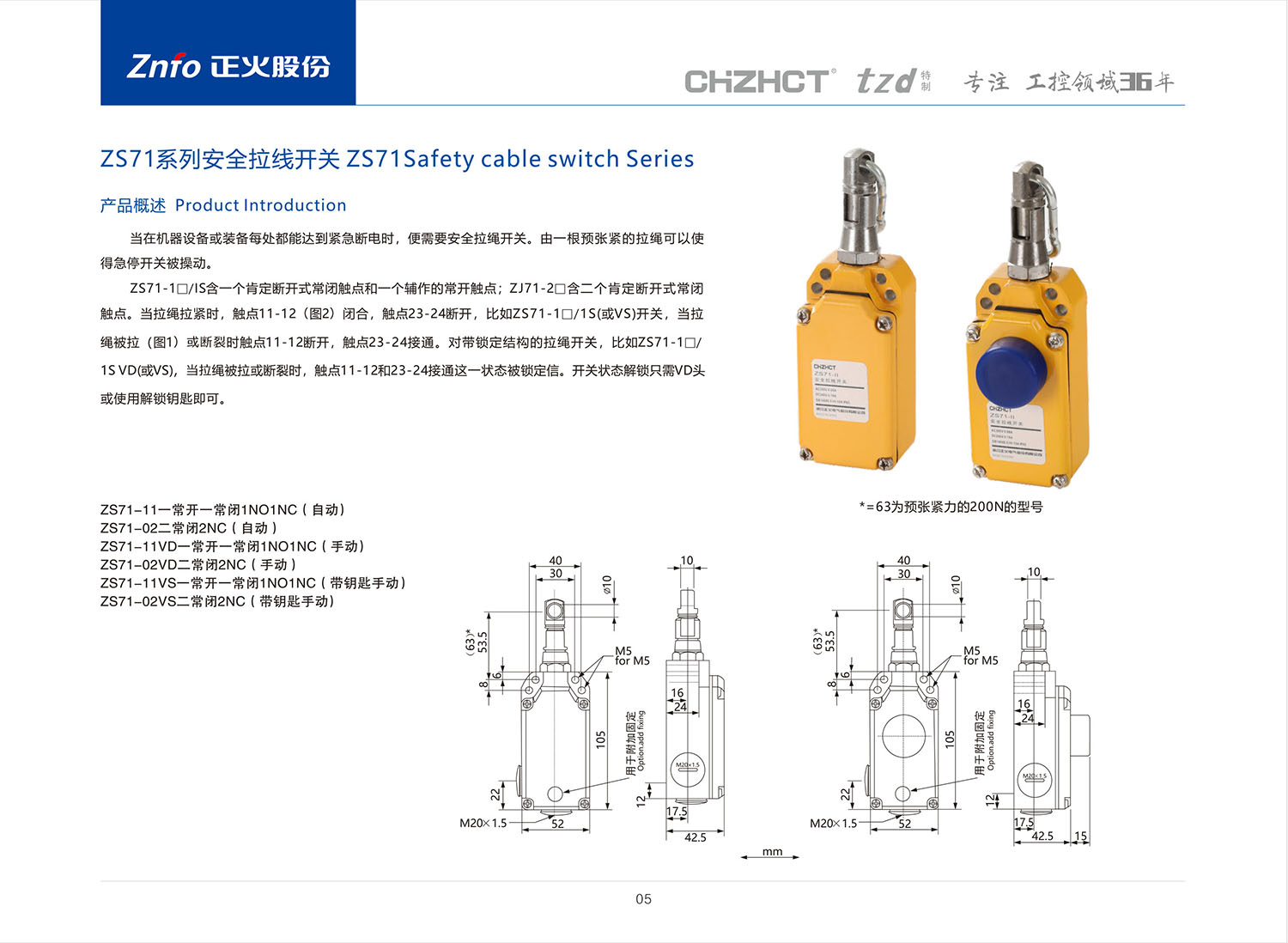 ZS71安全拉线开关_拉绳开关_行程/微动/跑偏/拉绳/超速_工业控制与保护_产品中心_今年会jinnianhui电气股份有限公司