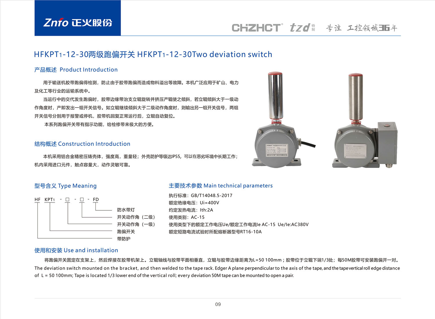 HFKPT1-12-30两级跑偏开关 _跑偏开关_行程/微动/跑偏/拉绳/超速_工业控制与保护_产品中心_今年会jinnianhui电气股份有限公司