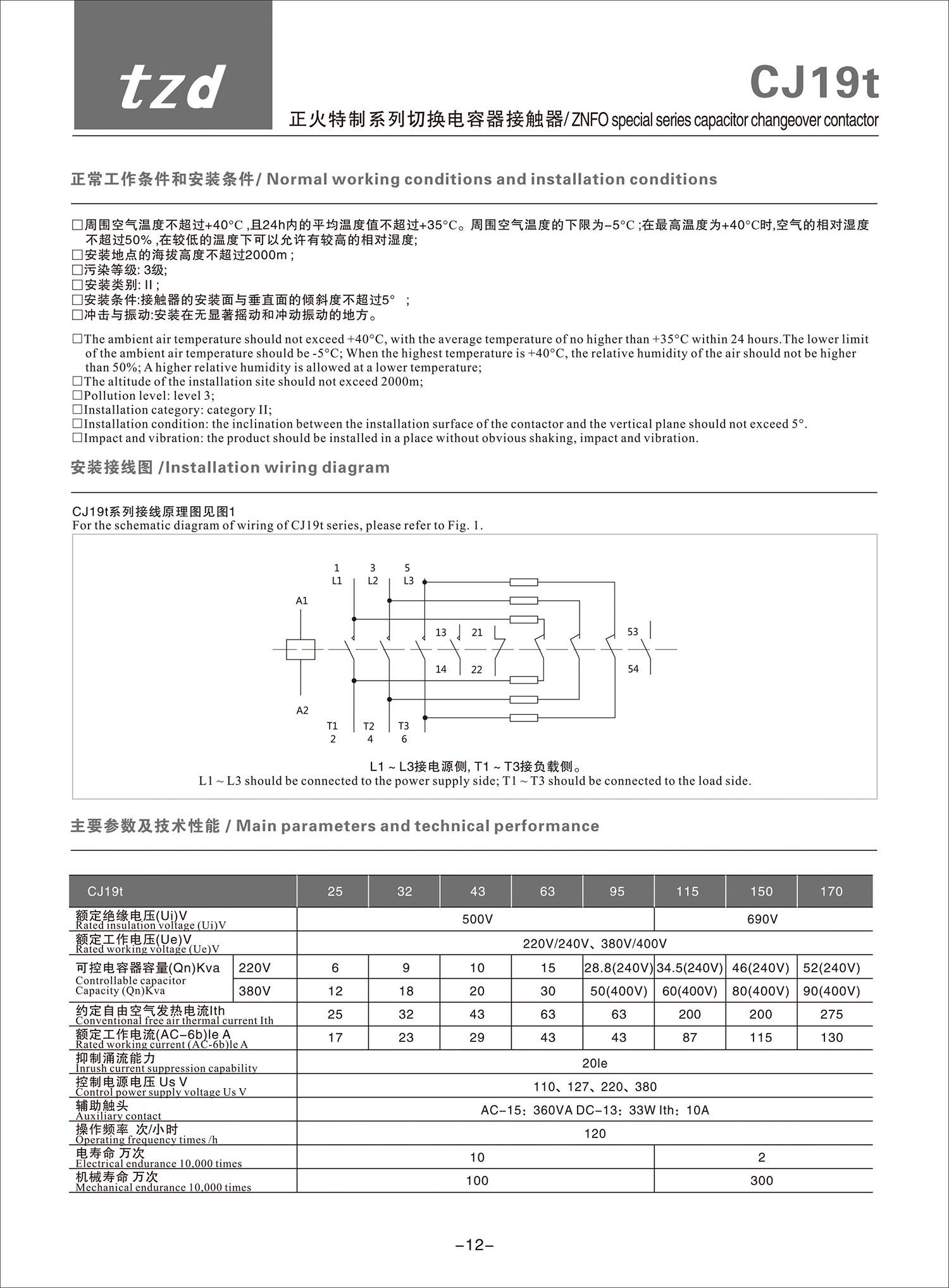 CJ19t 正火特制系列切换电容器接触器产品说明书