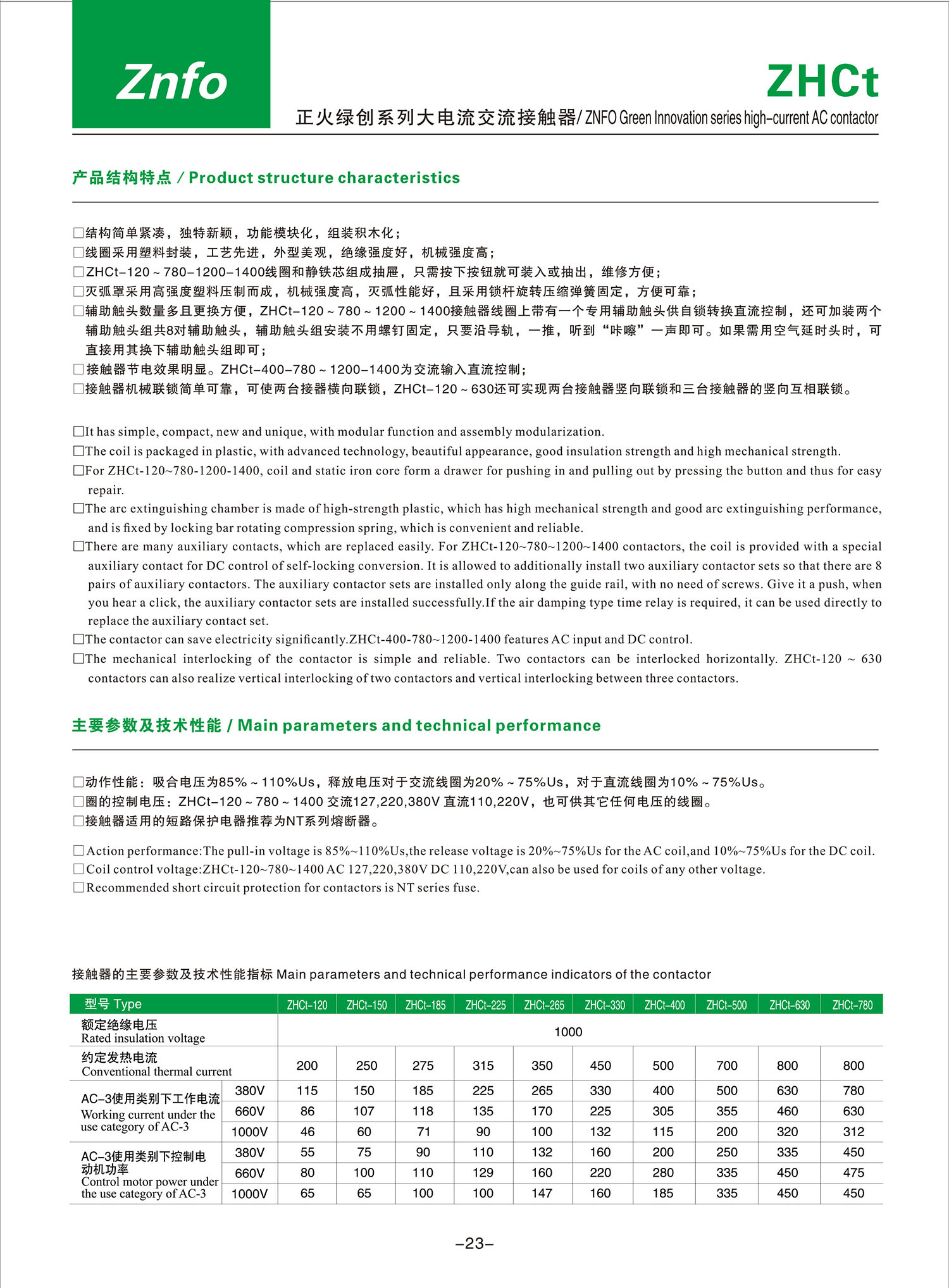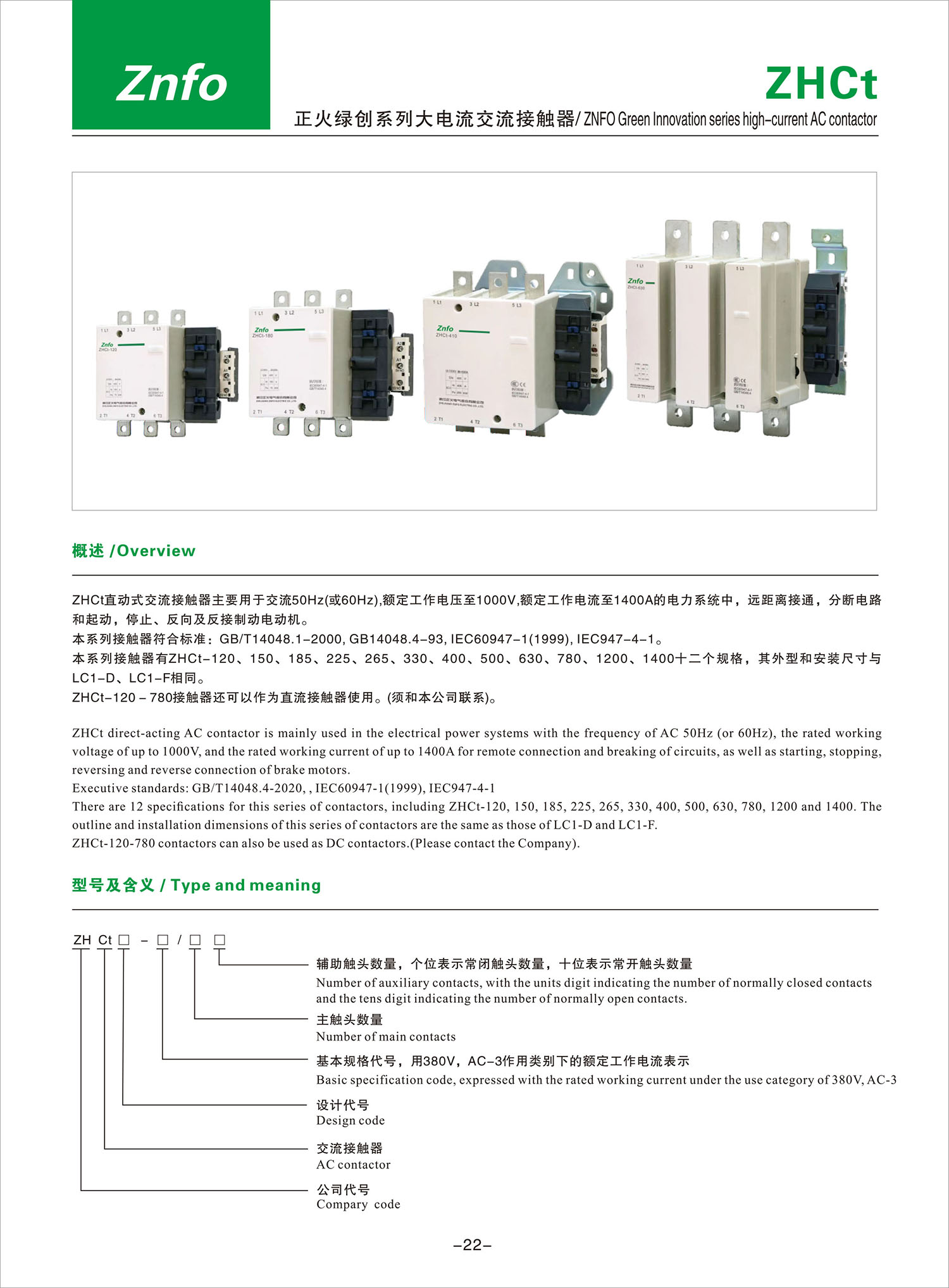 ZHCt 大电流接触器产品说明书